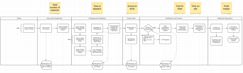 After 1 month of reporting, observation, and discussion around the metrics, help them make a simple process flow chart focussed on this particular business process.