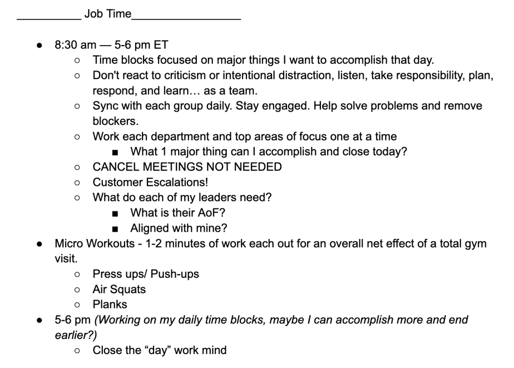 This simple process really helped me at the time. Helped me focus and get out of my own head and in the moments that mattered. This helped me focus on things as they are now, and now worry that they were not like I wanted them to be. Also, I had a mechanism to remind me to celebrate accomplishments. I was missing that in my career as I was solely focused on the next challenge after checking off the current box. Finding this as a way to incrementally make progress, note the wins, and see that I was moving to where I wanted to be was a breakthrough.